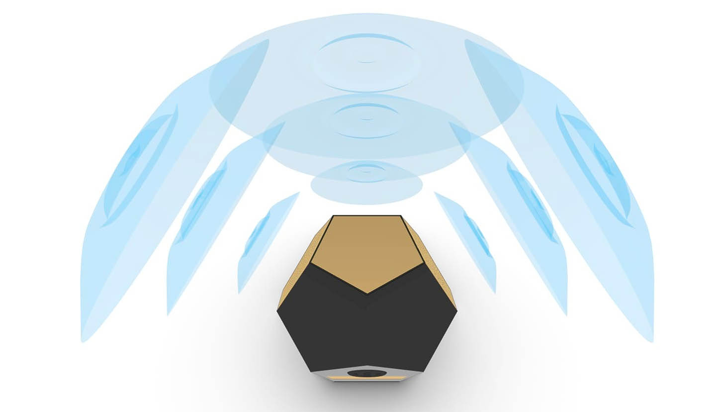 Olographic audio image. Dodecaedro’s 33° angle allows the speaker to create an acoustic phase in order to have soundexpantion out of axis for small, medium and large room.