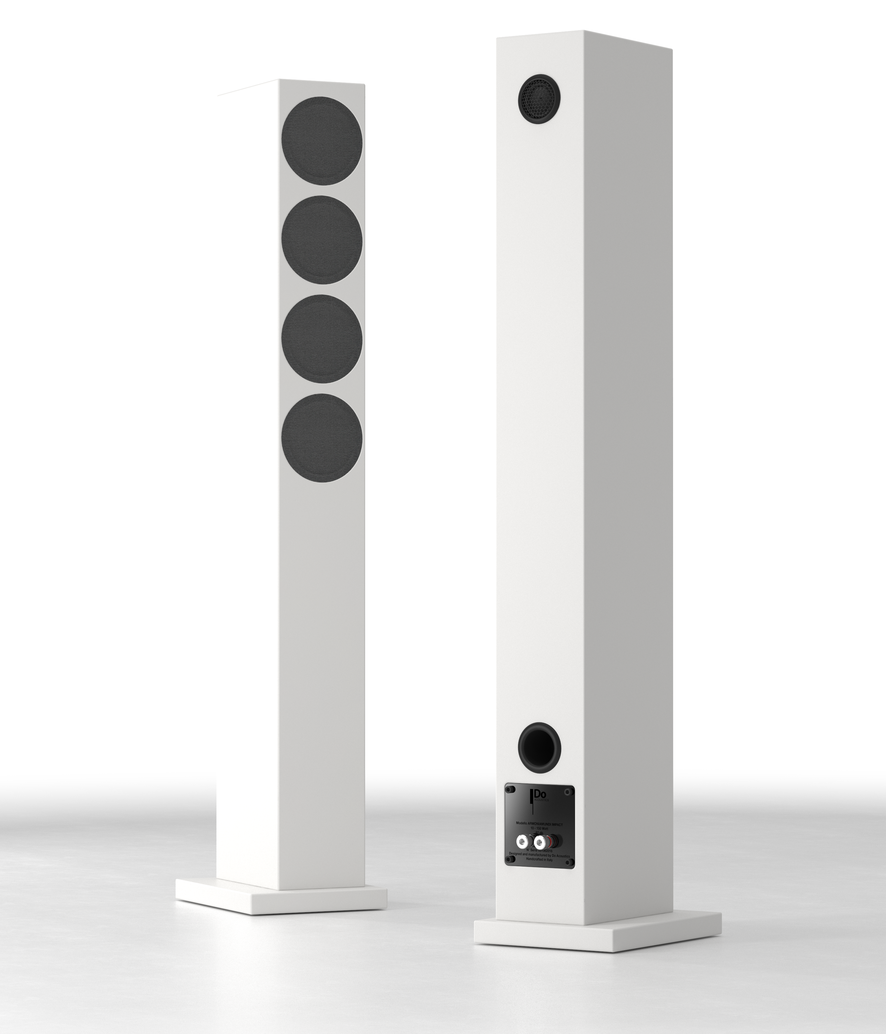 The small 10 cm baffler and the back tweeter make an incredible sound experience possible. A huge stage and a surprisingly wide frequency extension, both amazing for the size of the cabinet, joint with a great musicality due to multiple listening checks make the ArmoniaMundi Impact likely to be the best mini tower in the world.
